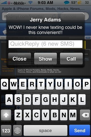 There is also a CALL button, so you can call the sender as opposed to replying. By tapping SHOW you can also launch iRealSMS main app if you want to view the entire conversation or wish to use other features such as forward or what have you.