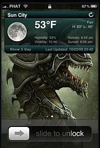 WeatherFeed is a widget for SmartScreen that allows you to view the weather for 2 different locations on the lock screen of your iPhone or iPod Touch. With WeatherFeed, you can view current weather conditions along with a five day forecast. The weather data is provided by Yahoo! Weather.